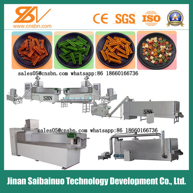 কুকুরের চিবানোর লাঠিটি বিজ্ঞানী কনফিগারেশনের সাথে কাঁচামাল হিসাবে স্টার্চ গ্রহণ করে এবং কো-এক্সট্রুডার থেকে এক্সট্রুড করা হয়েছিল, এটি লাঠি, হাড়, দ্বি-রঙ, দ্বি-স্বাদ ইত্যাদি অনেক ধরণের আকারে তৈরি করা যেতে পারে।এই ধরনের খাবার শুধু প্রোটিনই দেয় না, চর্বি, ভিটামিন, কুকুরের জন্য পুষ্টি, কিন্তু এছাড়াও কুকুর প্রকৃতি শখ সন্তুষ্ট।